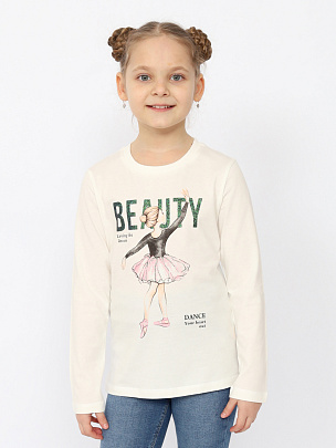 Джемпер для девочки с длинными рукавами. Горловина круглая, обработана бейкой. На полочке декоративная шелкография.