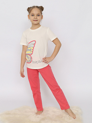 Пижама для девочки (футболка, брюки) экрю