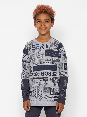 Джемпер с длинными рукавами, притачным поясом и манжетами. Рукав-реглан, отрезной, нижняя часть рукава декорирована принтом "Киберпространство".