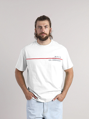 Футболка мужская с коротким рукавом. Вырез горловины круглый, обработан притачной планкой из рибаны с эластаном.
