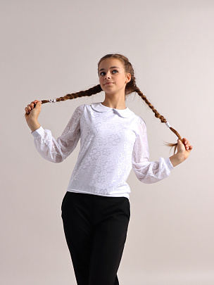 Сорочка свободного силуэта, длиной выше колена. Рукав втачной 3/4, по низу рукава машжета из кашкорсе. Круглая горловина обработана узкой обтачкой отсроченной по горловине. Низ сорочки закругленный, спинка длиннее полочки.