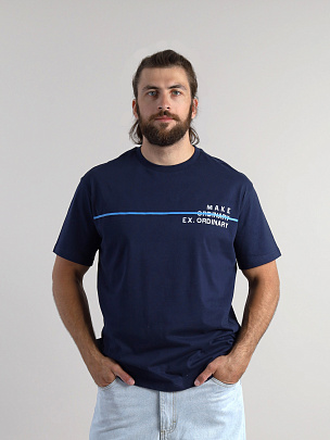 Футболка oversize со спущенным плечом, с коротким рукавом. Горловина круглая, обработана притачной бейкой из рибаны с лакрой. Плечевые швы смещены на перед и отстрочены. Перед оформлен принтом.