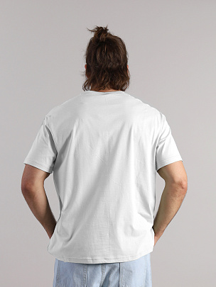 Футболка oversize со спущенным плечом, с коротким рукавом. Горловина круглая, обработана притачной бейкой из рибаны с лакрой. Плечевые швы смещены на перед и отстрочены. Перед оформлен принтом.